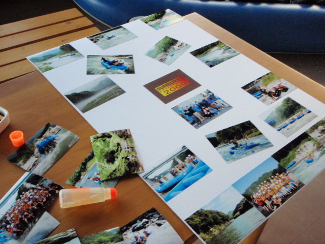 というわけで 恒例(?)のフォトフレーム作りです まず フレームと写真を用意します 写真は今シーズンのを(結構テキトーに)ピックアップ 中心を飾るのはやっぱコレ!! ロゴとスタッフ写真です 今年のロゴはグラデーションカラー スタッフは全員集合写真ならず・・・残念 まずは なんとなく下地用に写真を貼っていきます 上に貼っていくものは 手で千切ります そうすると 何となくかっこ良くなる!? 最初は「ん?」て感じなんですけど どんどん重ねていくと それっぽく見えてきます あまり考えずセレクトした写真ですが・・ シーズンを振り返りながら貼っていきます 「こんなことあったなぁ」 と 作業すること2時間ほど 完成!! 後日 ベース内に飾っておきます あなたもいるかも? 来シーズン ぜひぜひ見に来てくださいね by Mizuki ラフティング PR |