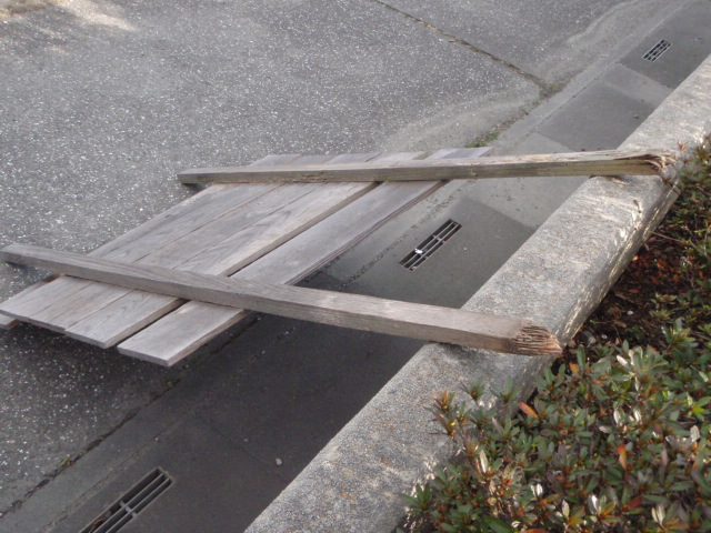 運転席から ふと右側に目をやると・・・ Oh - No!! かねてから「分かりずらい・見えにくい」と評判の我が社の看板がぁ!! 誰かのイヤガラセか??? いやいや 今日の長瀞は 朝から突風が吹いてたので ぽっきり折れてしまったようです (>_<) 板も外れかかってるー とりあえず ここで年を越してもらいます うーん 来春からどうするか・・・ |