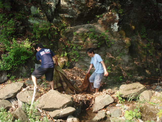 たまにラフティングツアー中に遊びへ行く ひみつの沢へ けっこう人工物が埋まってます あまり人が来れない所なのに・・・なぜだろう (-_-) そして カーペット・・・ でも・・ 楽しいこともあり 沢ガニくんです 写真には撮れませんでしたが 魚影も!! ニジマスかな? で・・・これが本日の収穫 川にゴミを捨てるのはやめましょー!! |