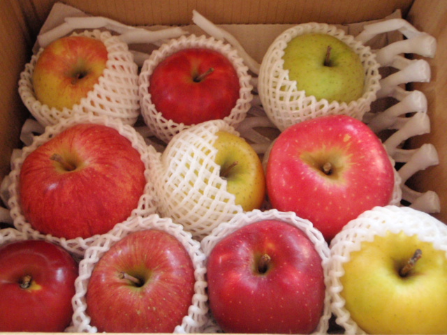 これがなかなか面白くて・・ な・なんと10種類の詰め合わせ+1種 入っているのは ・サン金星 ・サンジョナ ・王林 ・世界一 ・サンむつ ・むつ ・紅玉 ・サンふじ ・スターキング ・シナノゴールド そして新種らしいのですが ・こうこう みなさんはいくつ知っていましたか? っていうか・・・ どれがどれだか分かります? PR |