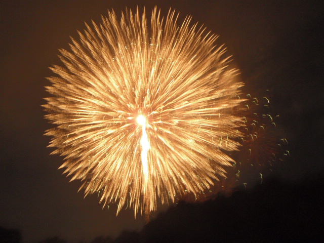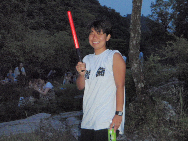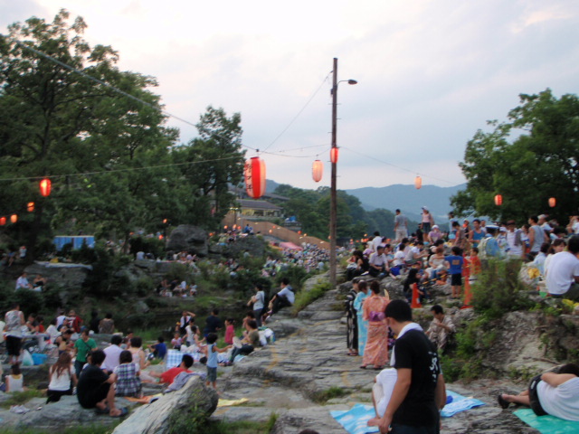 この日は、長瀞の人手もスゴイです (>_<) 岩畳もこのとおり ウチらはパドルから警棒に持ち替えて、警備のボランティアです!! 灯ろう等も流れて、良い雰囲気 (^^)/ 岩畳にいると花火は真下で見れます 来年は、ぜひみなさんもお越しください。 |