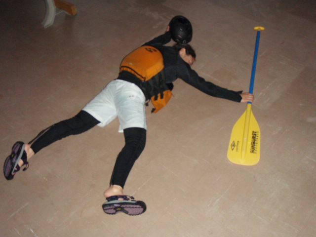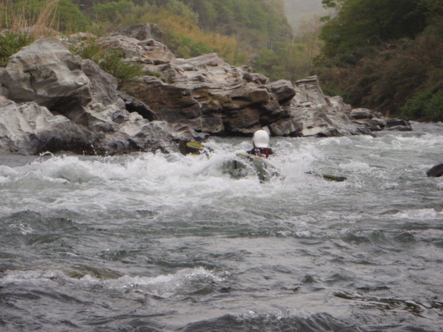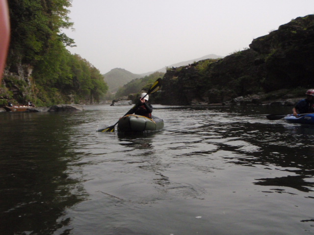 ベースで瀬の中や蛇行した流れの中での動きをミズキさんに教えていただいた後、いざ川へ